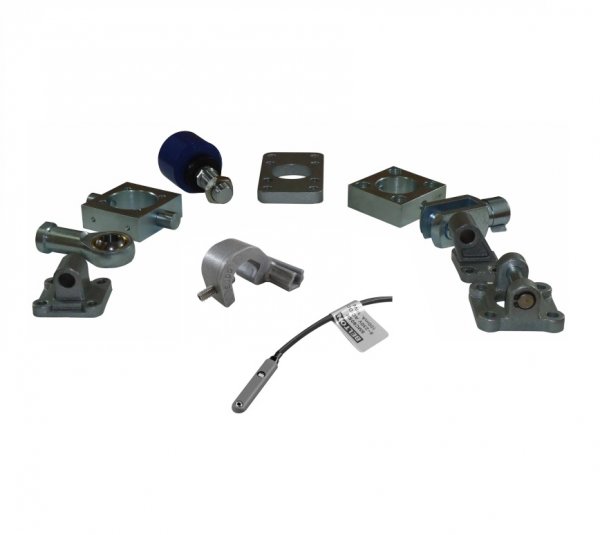Constituem uma gama de produtos para fazer a fixação dos cilindros, incluir graus de liberdade e compensar desalinhamentos. Acessórios seguem dimensional padronizado e variam conforme diâmetro do cilindro.
