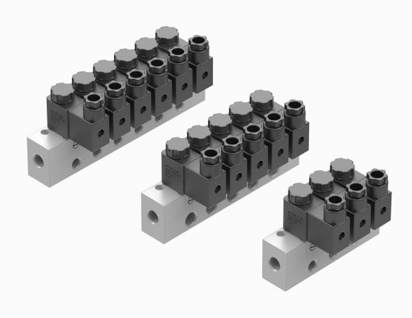Bloco de Válvulas de ação direta, adequadas para altas frequências operacionais com baixo tempo de resposta, ou servo acionamentos. Fornecidas nas versões 2/2 ou 3/2 NF. Blocos de até 05 válvulas.