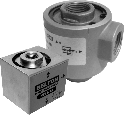 Válvula projeta para aumentar a velocidade de atuadores e cilindros. Consiste em aumentar a velocidade do escape de ar da câmara do cilindro, fazendo com que aumente consideravelmente a velocidade de acionamento.