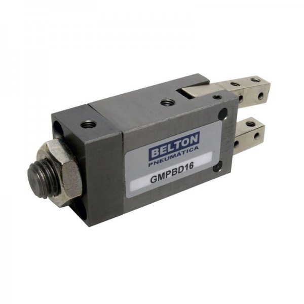 Atuador tipo garra angular ou pinça angular. Utilizado para movimentação de peças. Conta com hastes com multipla fixação, versão simples e dupla ação.