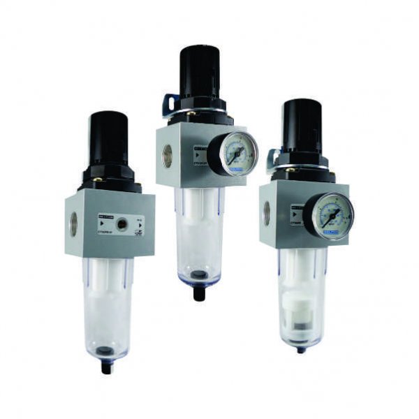 Atende em um único componente as funções especificas do Filtro de Ar e do Regulador de Pressão. Pode ser configurado com diferentes tipos de copos e de drenagem.