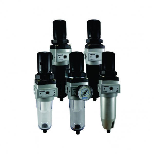 Atende em um único componente as funções especificas do Filtro de Ar e do Regulador de Pressão. Pode ser configurado com diferentes tipos de copos e de drenagem.