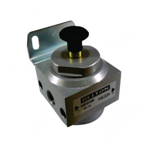 Bloqueia o fluxo de ar comprimido, de forma segura, e despressuriza o circuito pneumático por intervenção direta ou automaticamente ao atingir 4 kgf/cm².